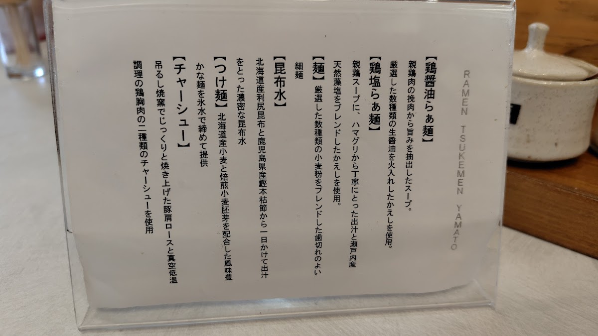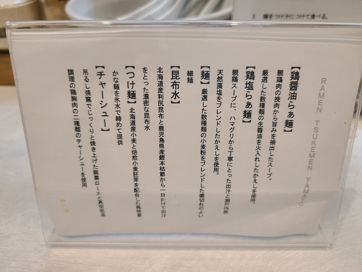 From a reviewer’s perspective, the menu at Ramen Tsukemen Yamato is refreshingly focused and confident, choosing depth over breadth. The highlight-and in this case, the defining soul of the menu-is 昆布水つけ麺, a dish that clearly represents the restaurant’s philosophy and technical skill. Rather than overwhelming diners with countless options, Yamato puts its trust in this signature tsukemen, allowing the quality of ingredients and preparation to take center stage. The kombu-infused water adds a refined umami layer that elevates the noodles even before they are dipped, showcasing a thoughtful balance between subtlety and richness. As a conclusion to the menu experience, 昆布水つけ麺 leaves a strong and memorable impression, reinforcing the idea that Yamato is a destination for those who appreciate precision, restraint, and the pure essence of Japanese tsukemen craftsmanship.